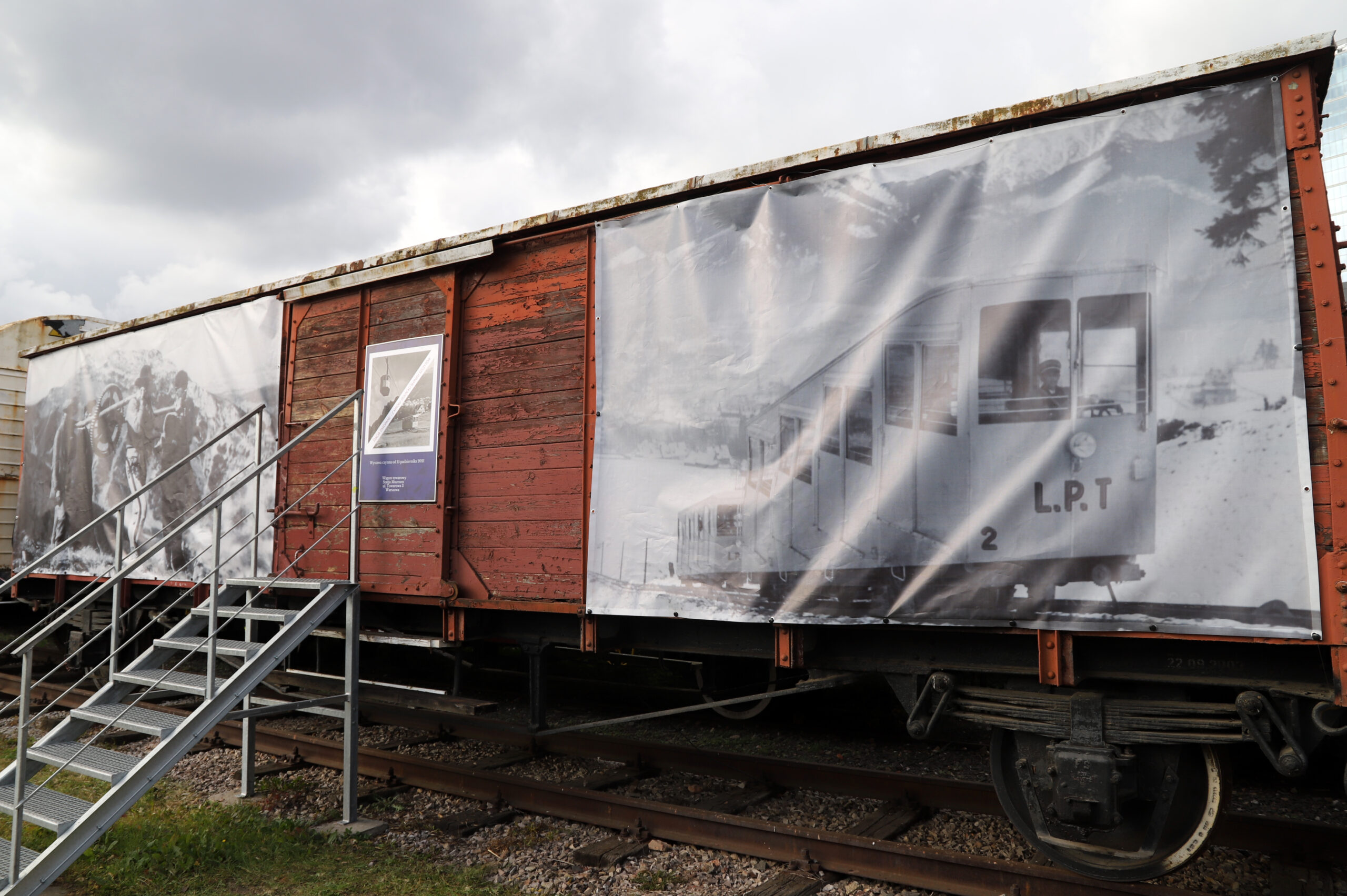 Wystawa została urządzona we wnętrzu wagonu towarowego z lat 40. XX w.
