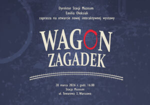 W imieniu Dyrektor Stacji Muzeum, Emilii Oleksiak, serdecznie zapraszamy na uroczyste otwarcie nowej interaktywnej wystawy stałej „Wagon Zagadek”, które odbędzie się 28 marca 2026 r. o godz. 16:00 w siedzibie Stacji Muzeum przy ul. Towarowej 3 w Warszawie.